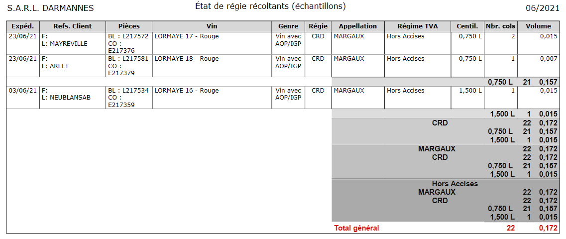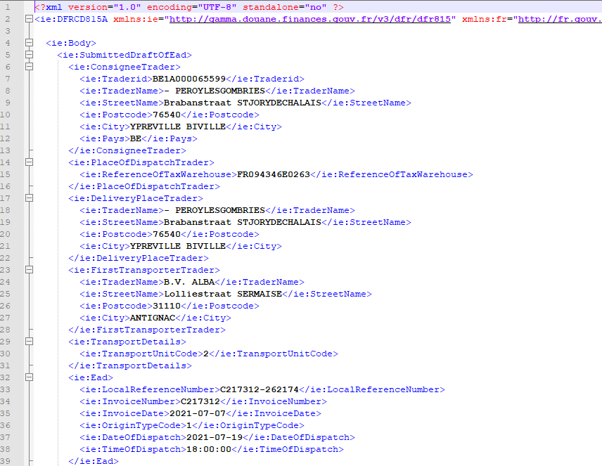 • Format DAE (DFR815) en suspension de droits d’accises.
