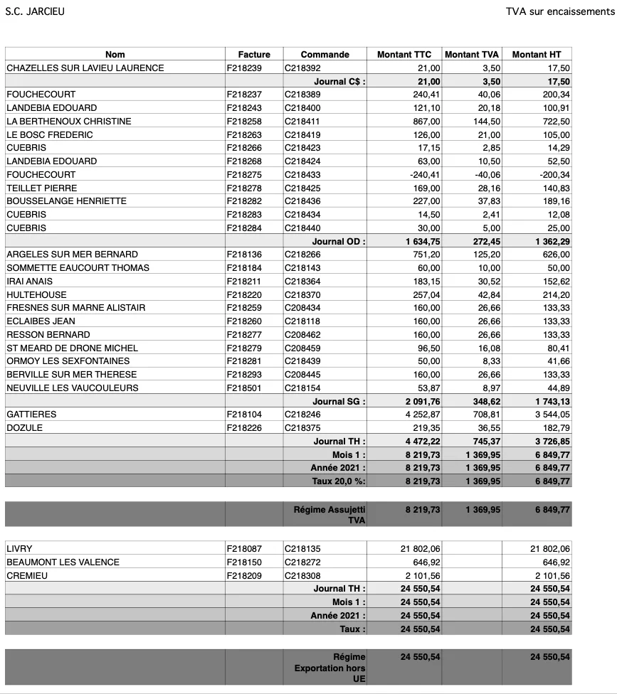 • Trois états : standard, assujettis TVA, hors assujettis.